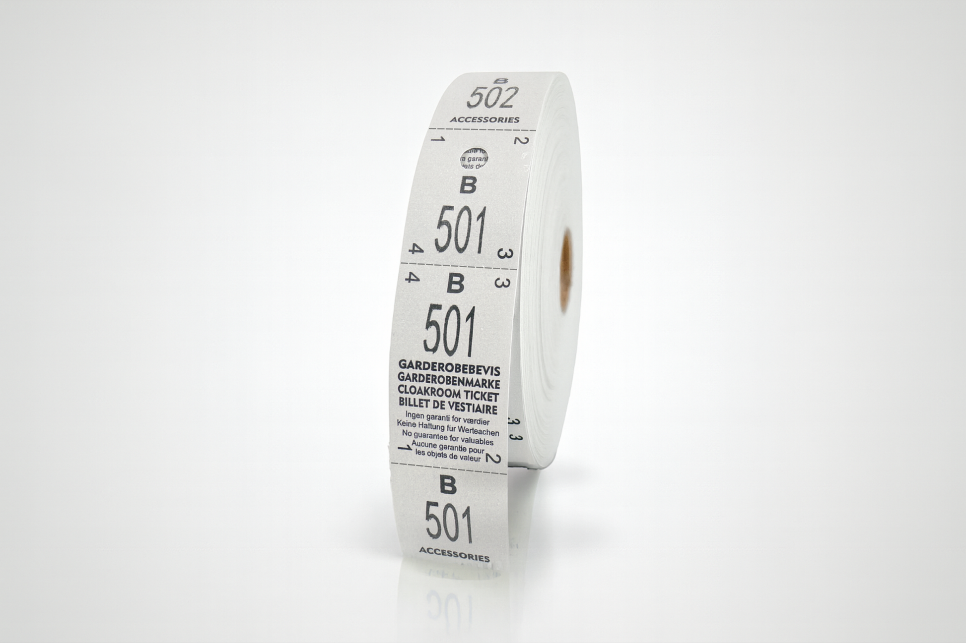 Svaka oznaka ima tri identična broja: jedan za gosta, jedan za odjeću i kontrolni broj za osoblje. To osigurava dodatnu sigurnost i jednostavnu organizaciju. Isporučuje se u pakiranjima od 500.
