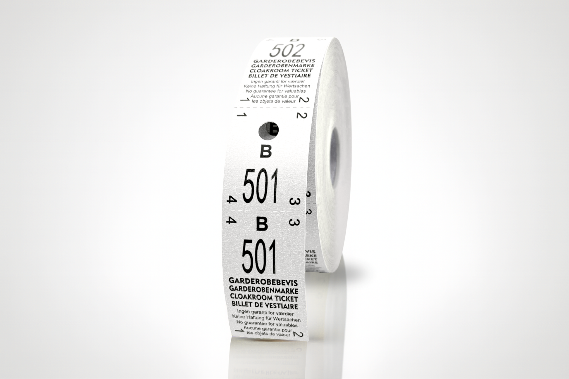 Minden címke két, azonos számú részből áll, így a vendégek és a személyzet könnyen megtalálhatják a felsőruházatukat. 500 darabos készletekben kapható – használatra kész.