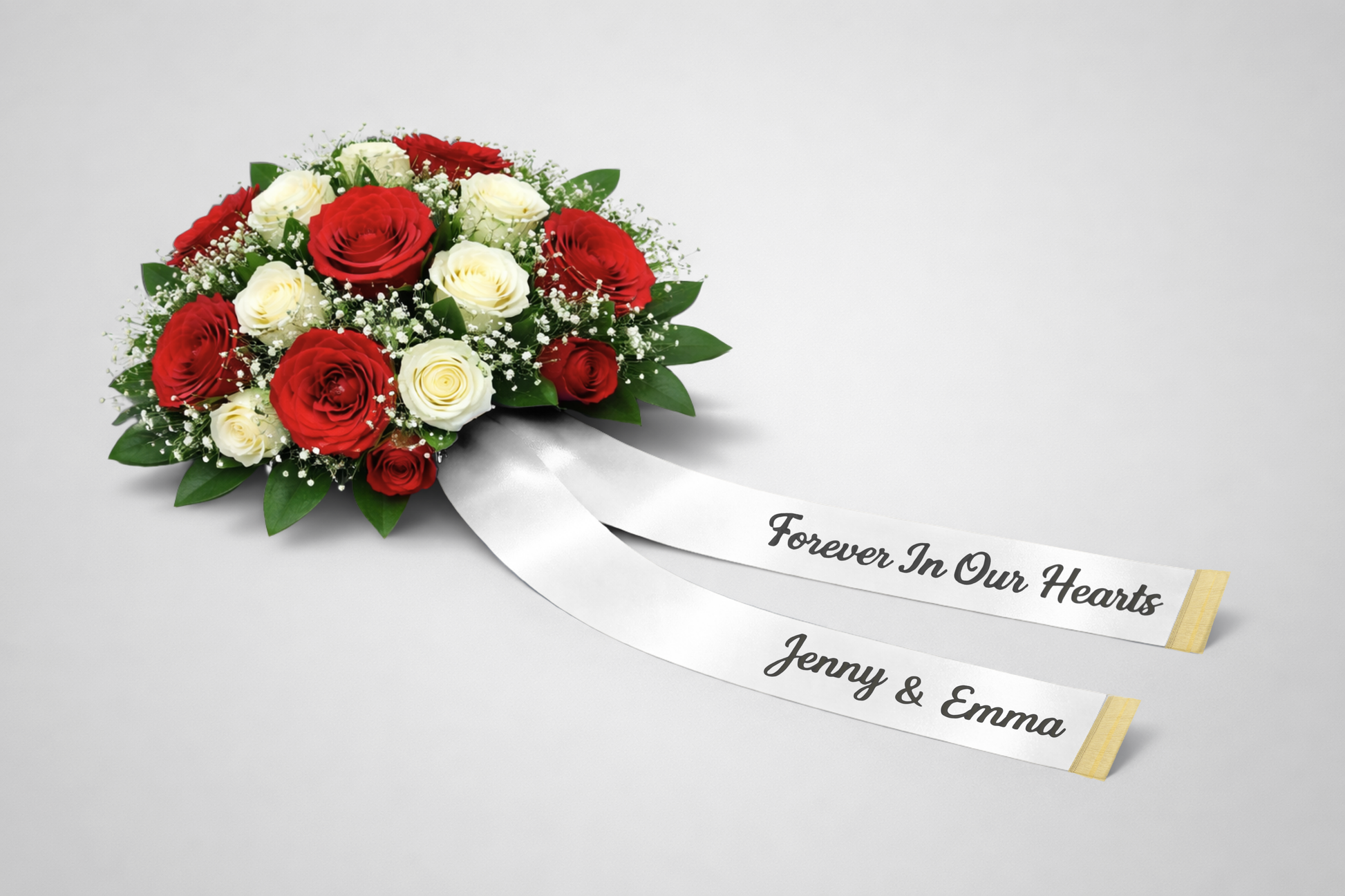 The bouquet ribbon is made of Polyprotex, which gives a calm, uniform and professional look, suitable for ceremonies where aesthetics and dignity are in focus.
